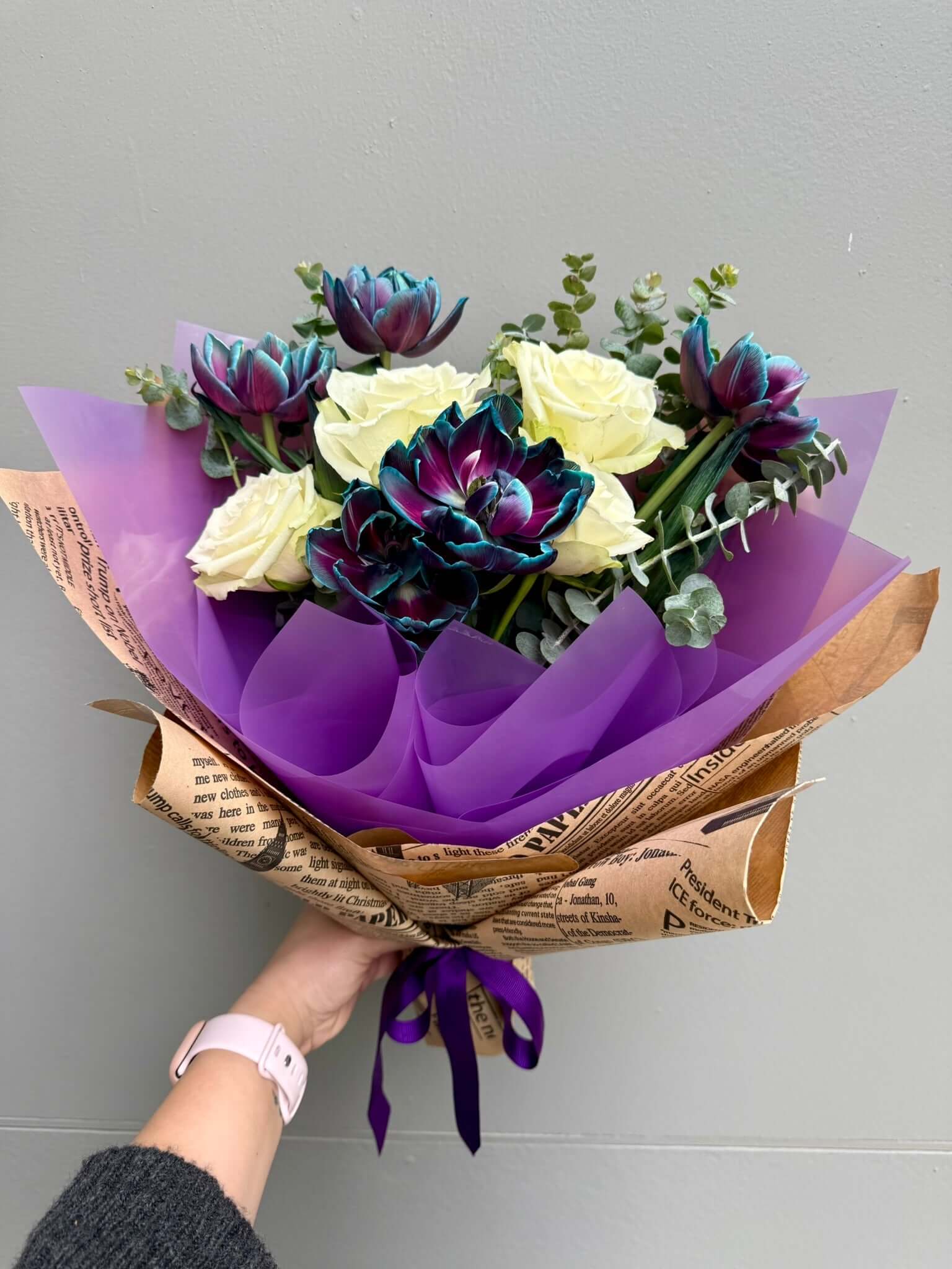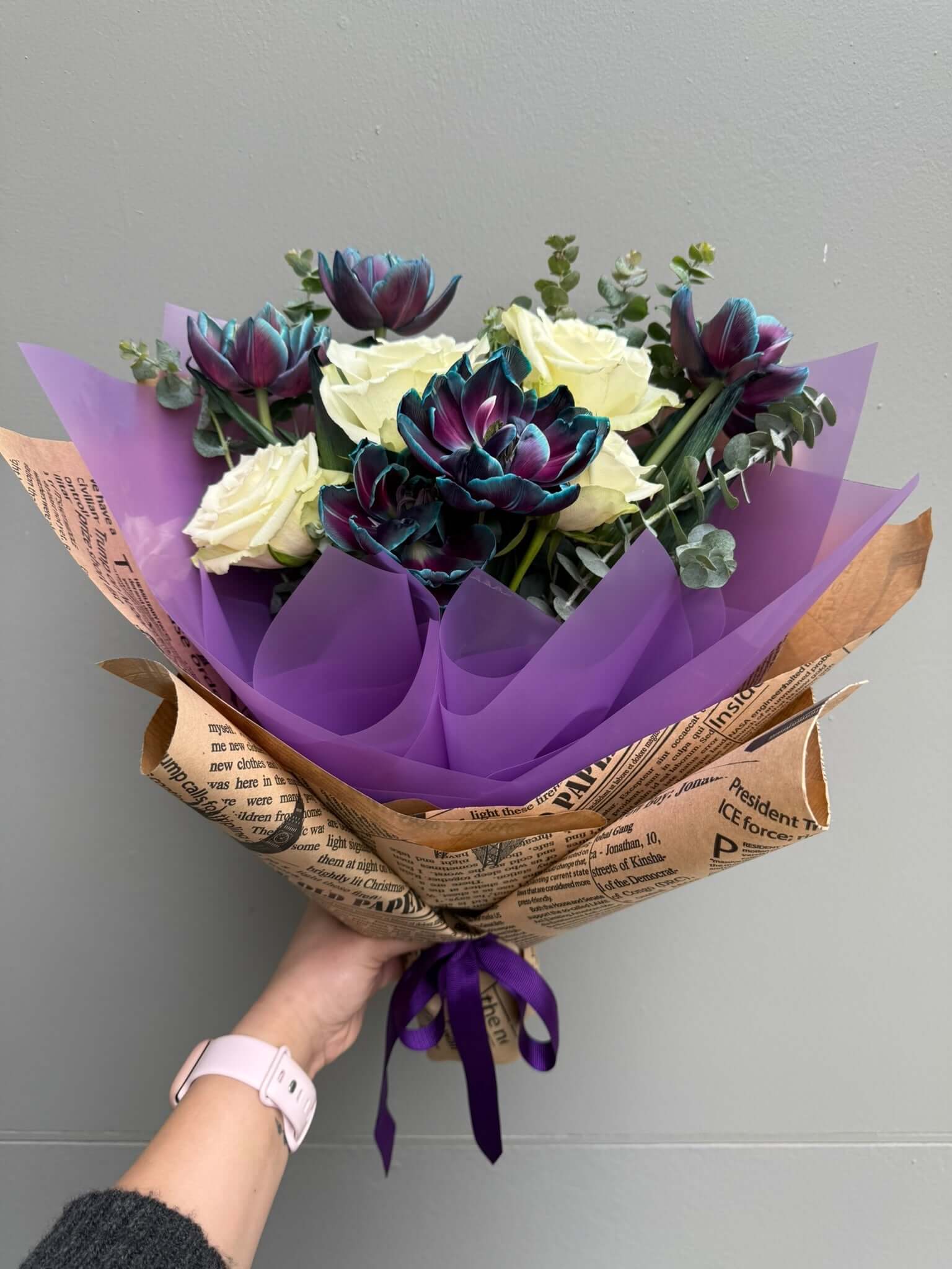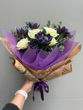 Morun asaleti, pembenin zarif dokunuşu ve beyazın saf güzelliği bir arada… Bu özel buket, doğanın en güzel renklerini birleştirerek hem göz alıcı bir uyum hem de iç ısıtan bir duygu taşıyor. Sevdiklerinize neşe, huzur ve sevgi dolu anlar armağan etmek için… 🌸💜🤍