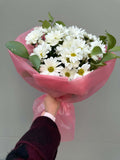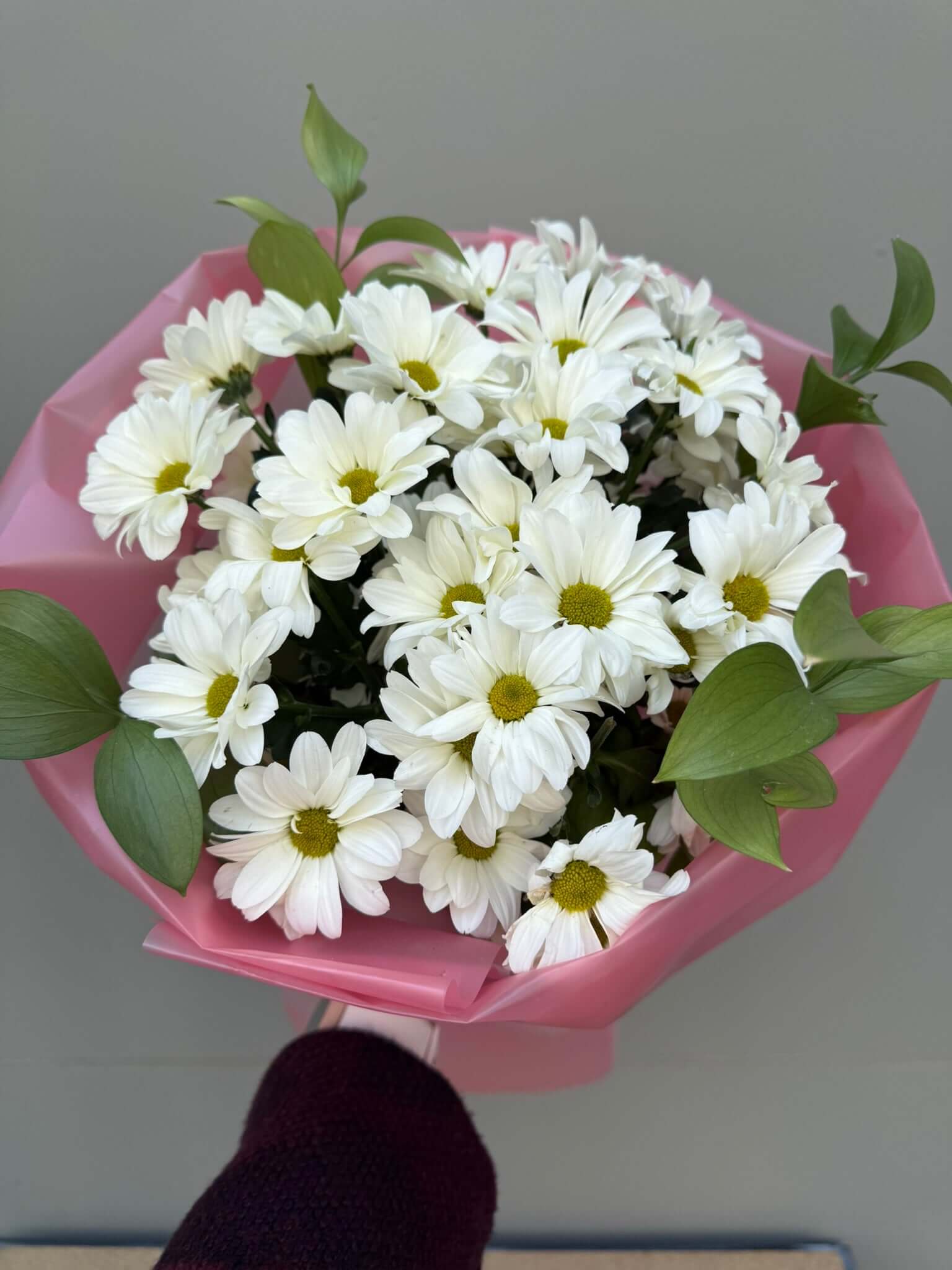 İthal papatyalardan oluşan buketimiz modern ambalajlama ile sizlerle.